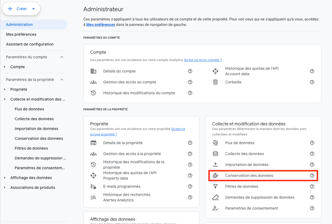 Modifier la période de conservation des données